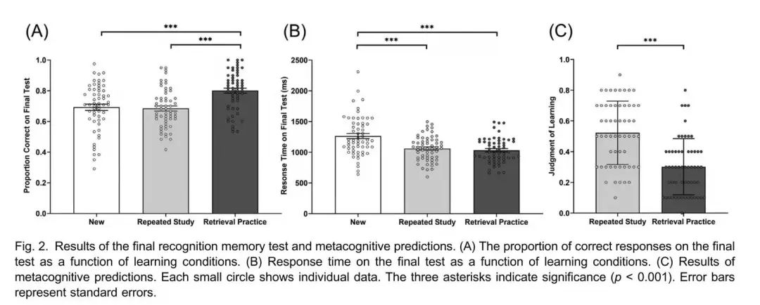 该研究采用经典的提取练习效应范式比较了62位中英双语者使用不同学习策略(提取练习和重复学习)学习法语(L3)单词的记忆保持差异。结果发现,提取练习的正确率显著高于重复学习,但是学生普遍们认为重复学习的记忆效果会好于提取练习。结果表明,提取练习是一种有效的学习策略,它可以促进L3词汇的学习和记忆保持;但是学习者对提取练习促进外语词汇学习的重要性认识不够。该实验结果对外语教育教学有一定的启示意义。