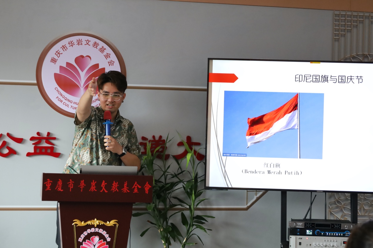 我院21级汉语国际教育专业硕士印度尼西亚研究生傅维强5月22日参加由重庆市华岩文教基金会组织的“世界文化交流与发展——爱心公益课堂”活动并担任授课教师给小学生们介绍印尼文化。该“爱心公益课堂”的活动目的是为了介绍来自世界各地留学生家乡的文化,涉及语言、礼仪、旅游景点等主题。