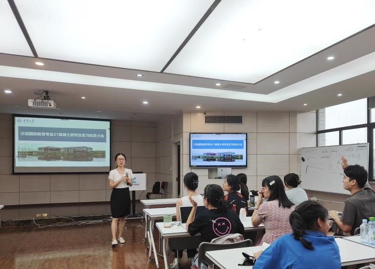 6月21日16时,汉语国际教育专业21级硕士研究生实习动员大会于外国语学院楼501室顺利举行。本次会议由专业负责人杜瑾老师主持,全体2021级汉语国际教育专业学生通过线上和线下的方式参与会议。大会旨在向2021级研究生讲解实习相关事宜,动员大家将所学知识运用到实践中,为日后踏上就业之路做好铺垫。