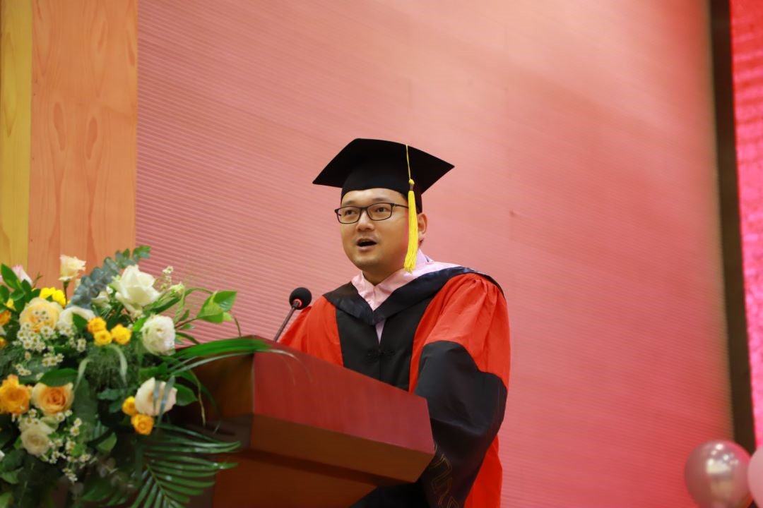 毕业研究生代表赵家宁在发言中感念重大之“大”,感谢母校为他提供了足够多的机会和平台,让他能够结识良师益友、拓展国际视野、厚积薄发。作为汉语国际教育专业毕业生,他通过两年在重大外院的学习和生活,更加坚定了“讲好中国故事,传递中国声音”的信念与决心。同时,赵家宁勉励同学们“道阻且长,行则将至。永远赤诚,永远做炬火,永远做心怀家国、不负使命的重大外院人”。