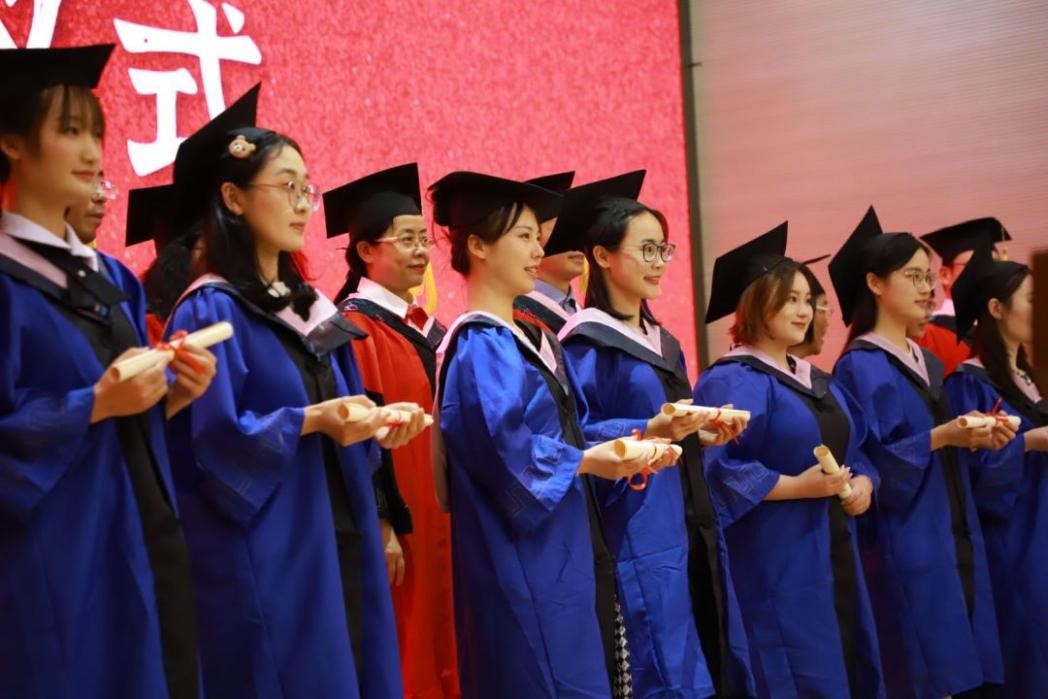 外国语学院2022届毕业典礼暨硕士、学士学位授予仪式在《追忆大学生活剪影》的主题视频中温馨开场。接着,活力的舞蹈和《我的大学生活》相声节目使场内气氛逐渐高涨。同学们欢呼阵阵、笑语连连。