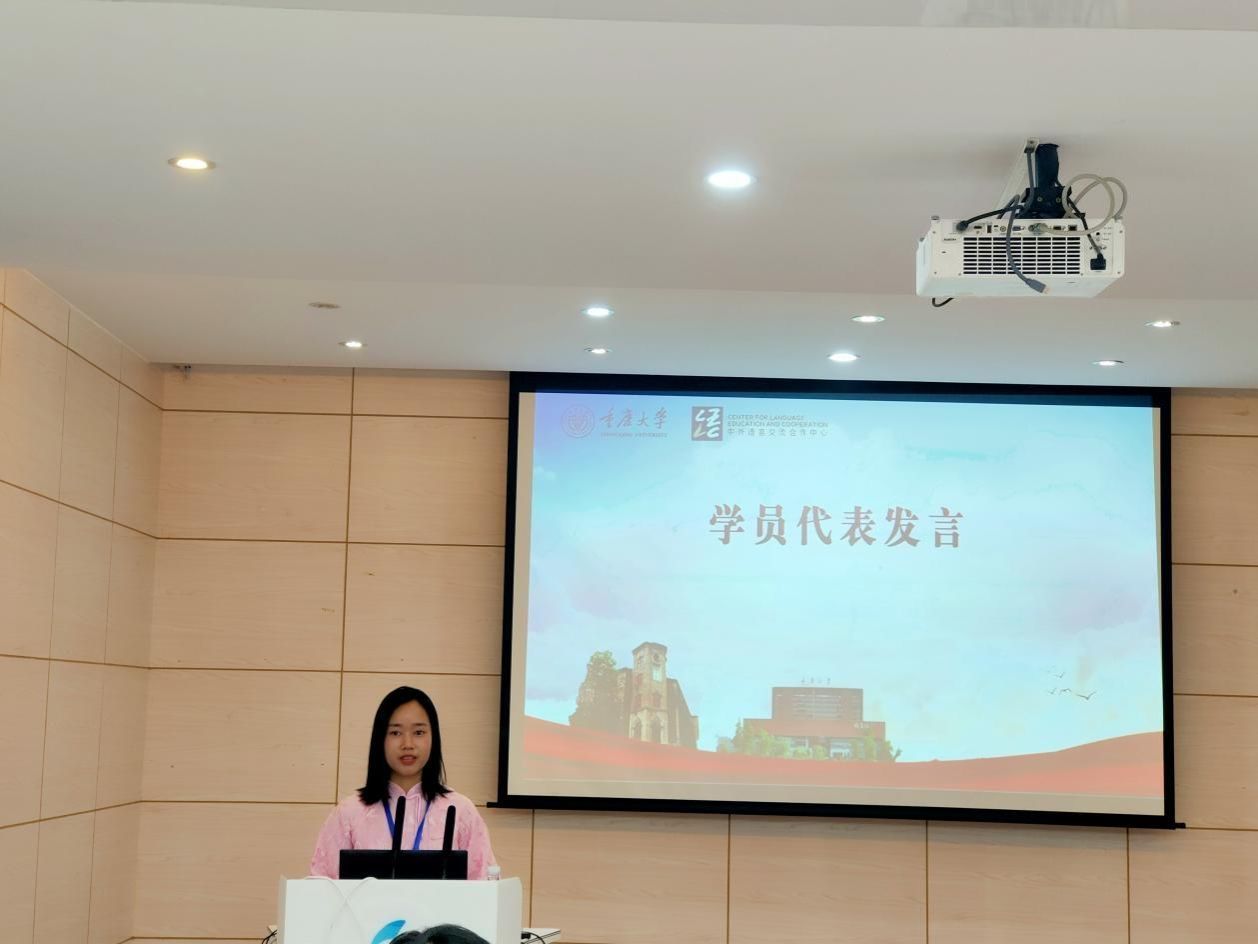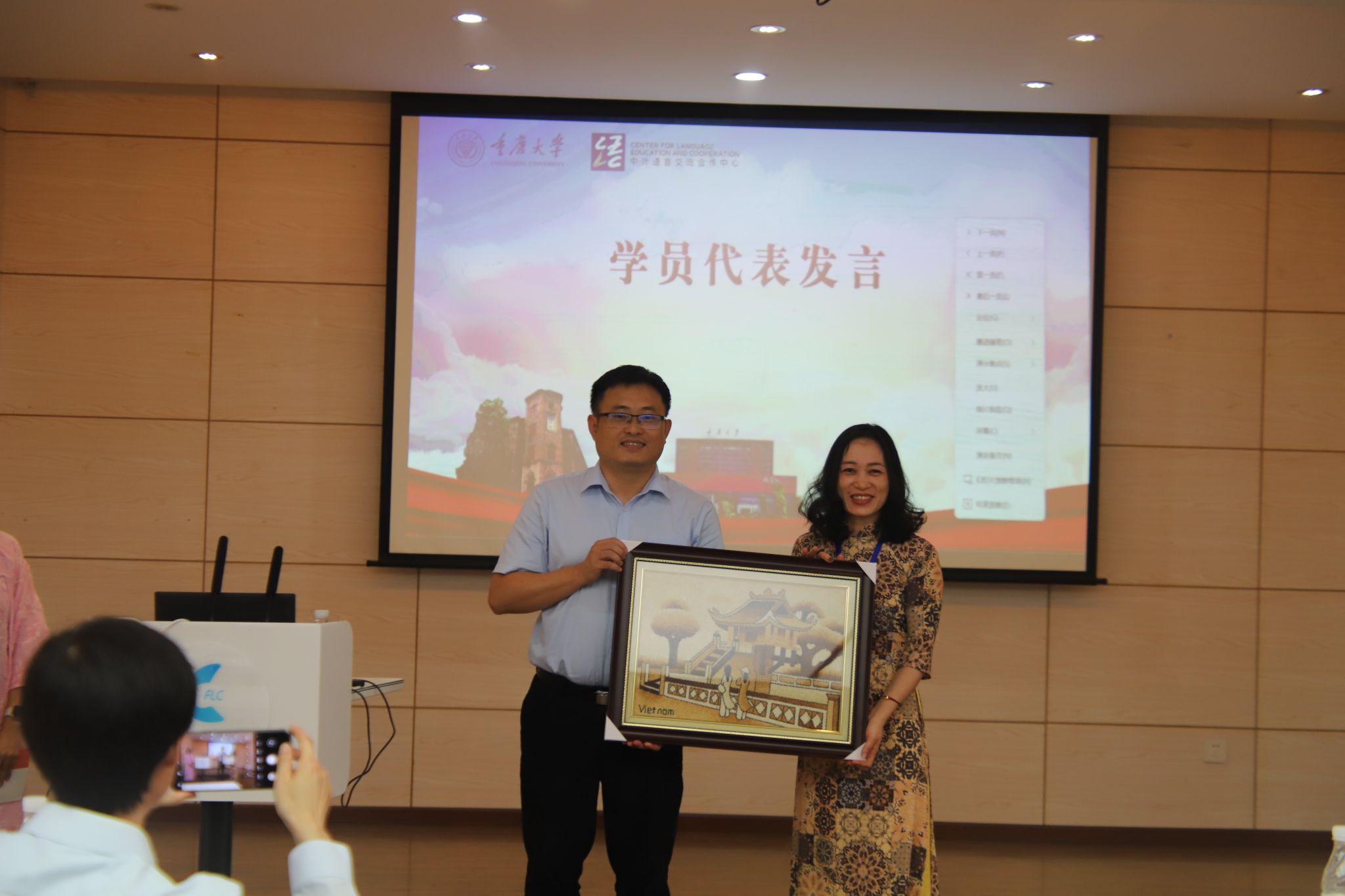 越南胡志明市师范大学高玄珠老师作为学员代表发言。感谢语合中心和重庆大学为越南教师提供宝贵的学习机会。胡志明主席与重庆的渊源更让学员倍感亲切,愿以此行为纽带,促进两地教育合作迈上新台阶。