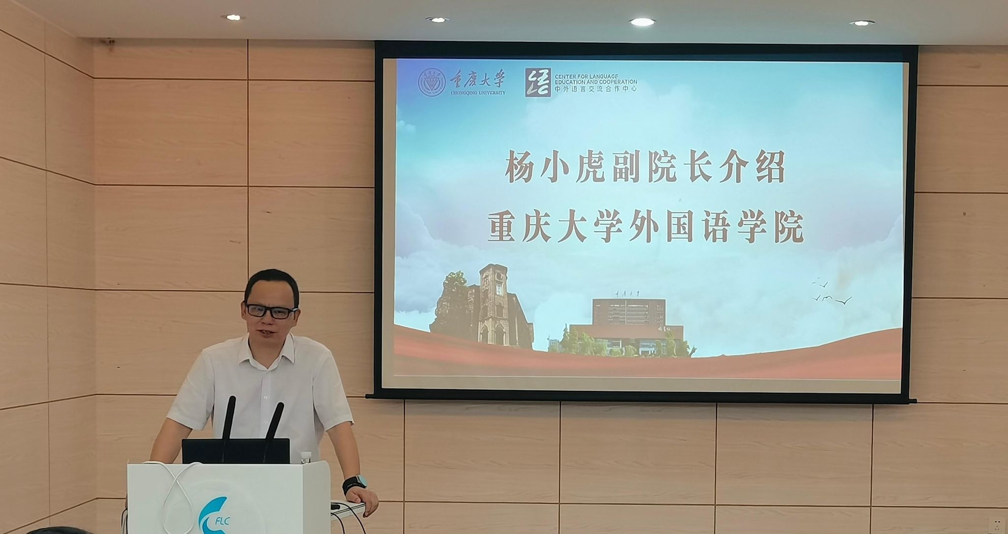杨小虎副院长介绍了重庆大学及外国语学院的发展历程,回顾了学校在国际中文教育领域的探索,成功举办泰国、英国、法国、挪威、意大利、澳大利亚等来华研修项目。