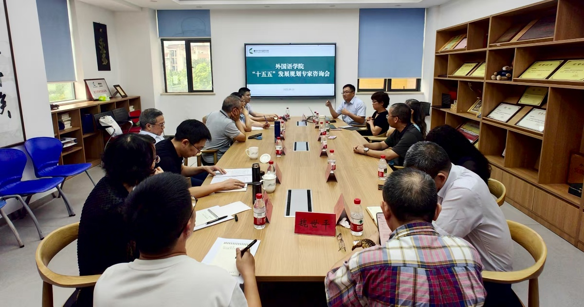 在“十四五”规划收官冲刺与“十五五”规划谋篇布局的关键节点,外国语学院于2025年9月11日下午召开“十五五”发展规划专家咨询会。会议邀请湖南大学刘正光教授、西南大学文旭教授和肖开容教授担任咨询专家。学院党政领导班子成员及教师代表参会,莫启扬院长主持会议。