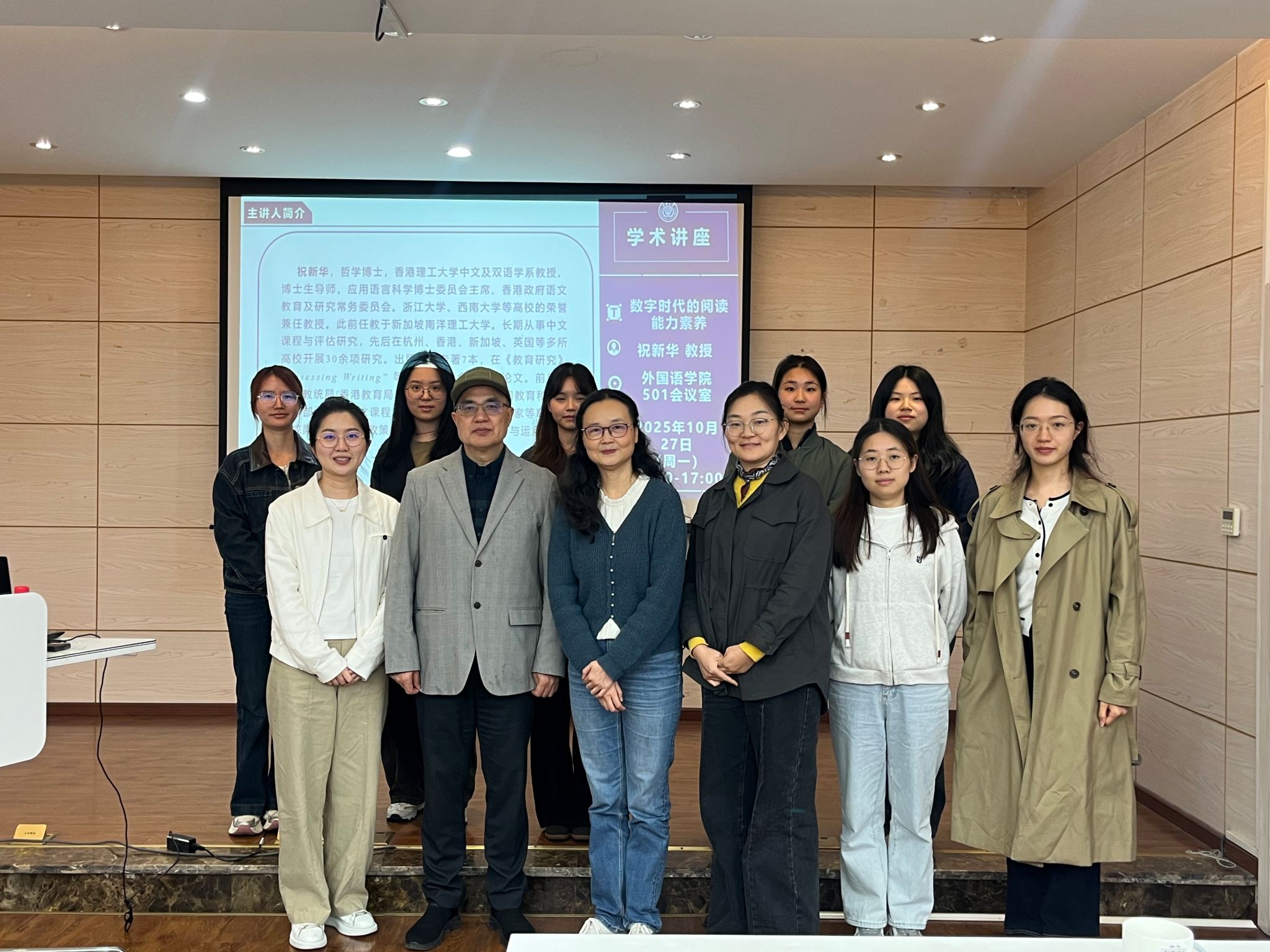 2025年10月27日下午,香港理工大学中文及双语学系祝新华教授应邀莅临我院,在外国语学院501会议室作了题为“数字时代的阅读能力素养”的学术讲座。本次讲座由辜向东教授主持,吸引了众多师生参加。