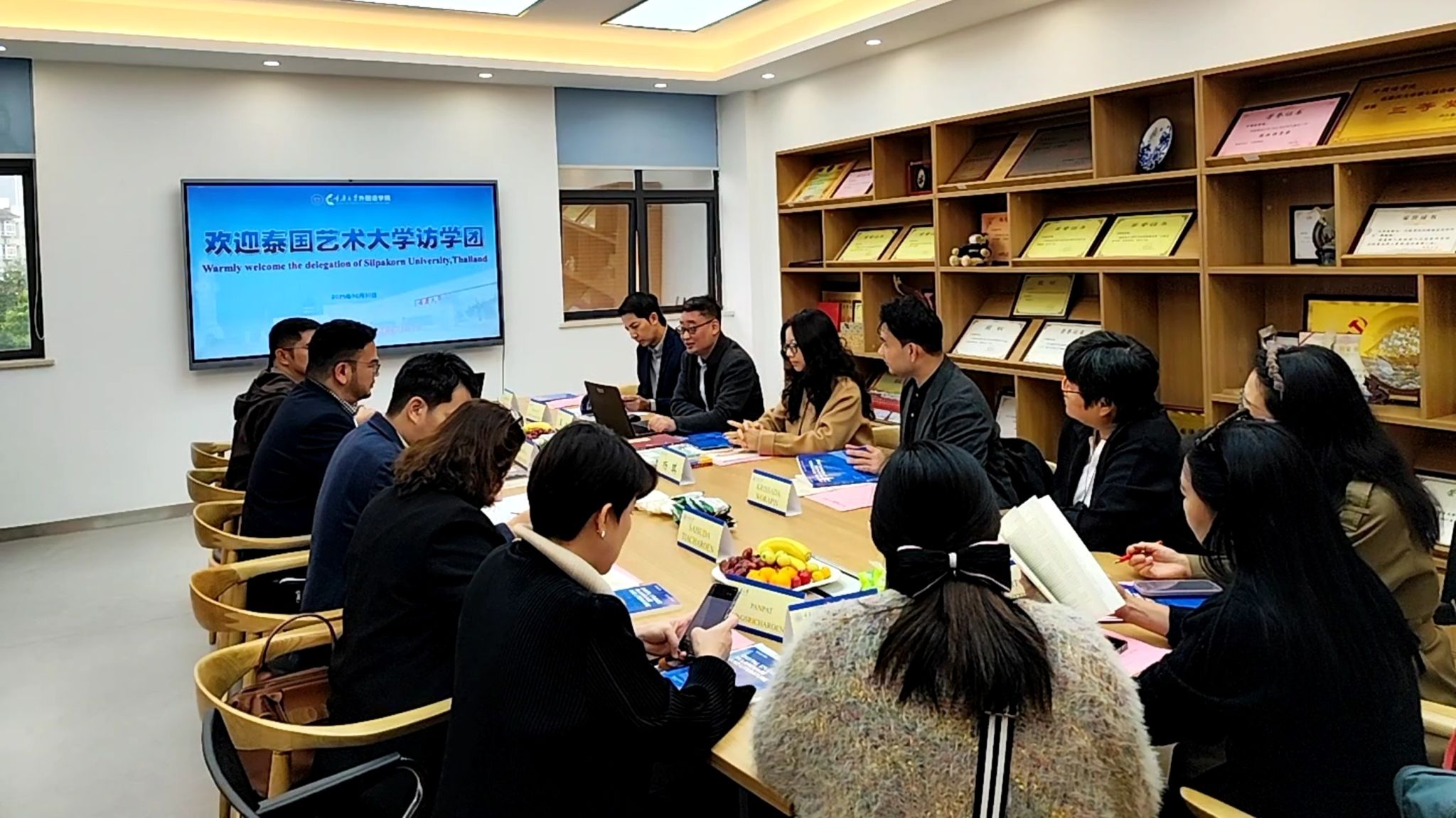 在交流环节中,双方就学术出版合作展开深入探讨。泰方代表团对期刊表现出浓厚兴趣,重点关注AI时代的出版伦理与学术规范、数据库收录及审稿流程等议题。王江教授进行了详细解答,并介绍了期刊的质量控制与出版机制。双方一致认为,数字人文与语言文学的交叉研究前景广阔,并就国际合作、成果共建及学者互访进行了探讨。