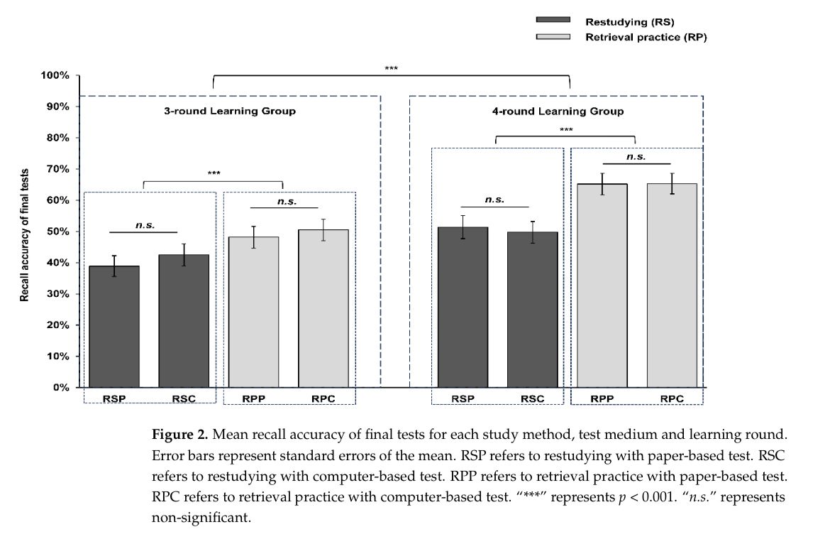 该研究聚焦数字闪卡学习中的两个关键问题:学习轮次如何调节提取练习效应,以及该效应是否具有跨情境稳定性。课题组通过对108名中英双语者开展系统实验,首次揭示了学习轮次在提取练习过程中的显著调节作用,并验证了该效应在不同测试环境下的稳健性。研究从认知机制层面证实,增加学习轮次有助于强化提取练习效果,同时表明数字闪卡学习在不同媒介环境中具有稳定优势。该发现不仅为理解数字闪卡学习机制提供了新视角,也为优化外语词汇教学提供了实证依据。