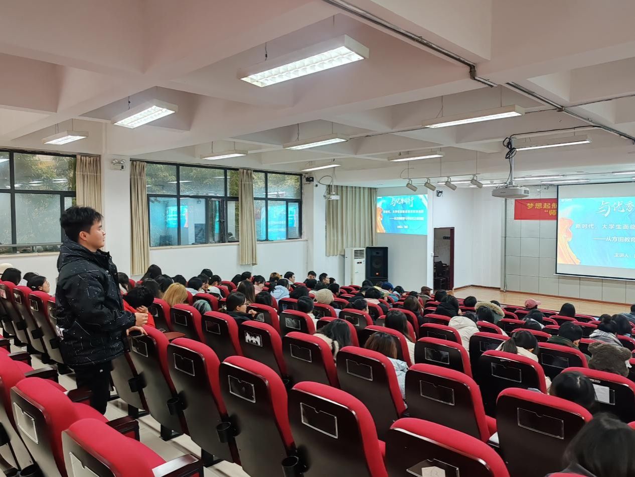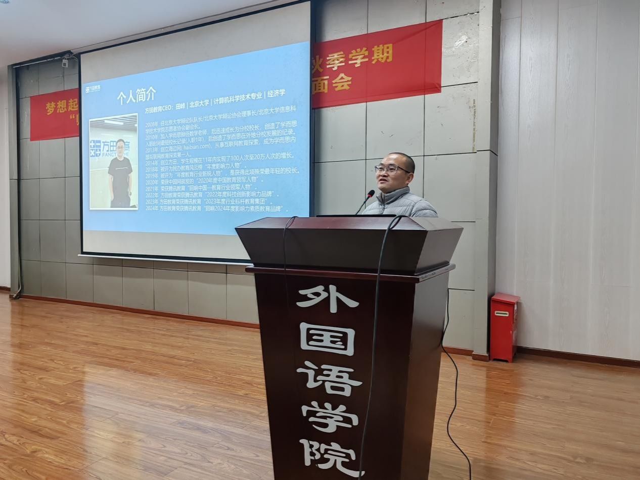 讲座伊始,田峰CEO以自身创业经历为切入点,深情回顾了方田教育从初创到发展壮大的十年征程。他坦言,创业之路布满艰辛,从初期的资源匮乏、市场开拓难题,到团队建设中的磨合与挑战,每一步都充满考验;但正是这份坚守与深耕,让企业在教育行业站稳脚跟,收获了行业认可与社会价值。田峰通过一个个真实鲜活的创业故事,向在场学子传递了“坚守初心、迎难而上”的奋斗精神,让同学们深刻体会到成功背后的积累与付出。