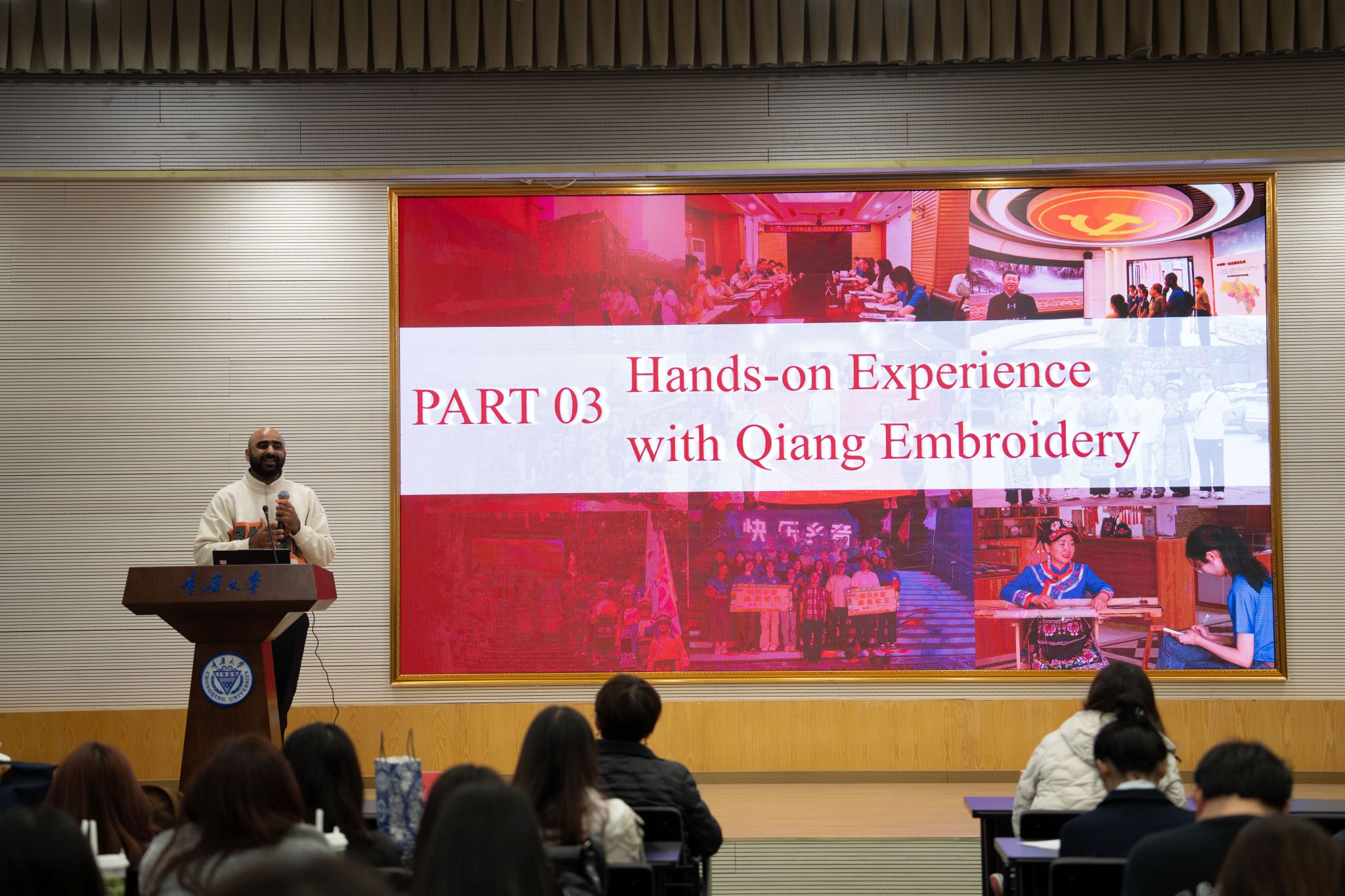 重庆大学学子以本土实践回应关切:“梁滩河流域生态治理”“城市湿地公园建设”等项目展现“绿水青山就是金山银山”的落地成效;“无废课堂建设”“璧山区产业升级”等研究呈现可持续发展理念的微观渗透;“北川羌绣非遗探索”团队则通过记录传承人技艺创新与产业化实践,展现非遗活态传承与乡村振兴的生动实践。
