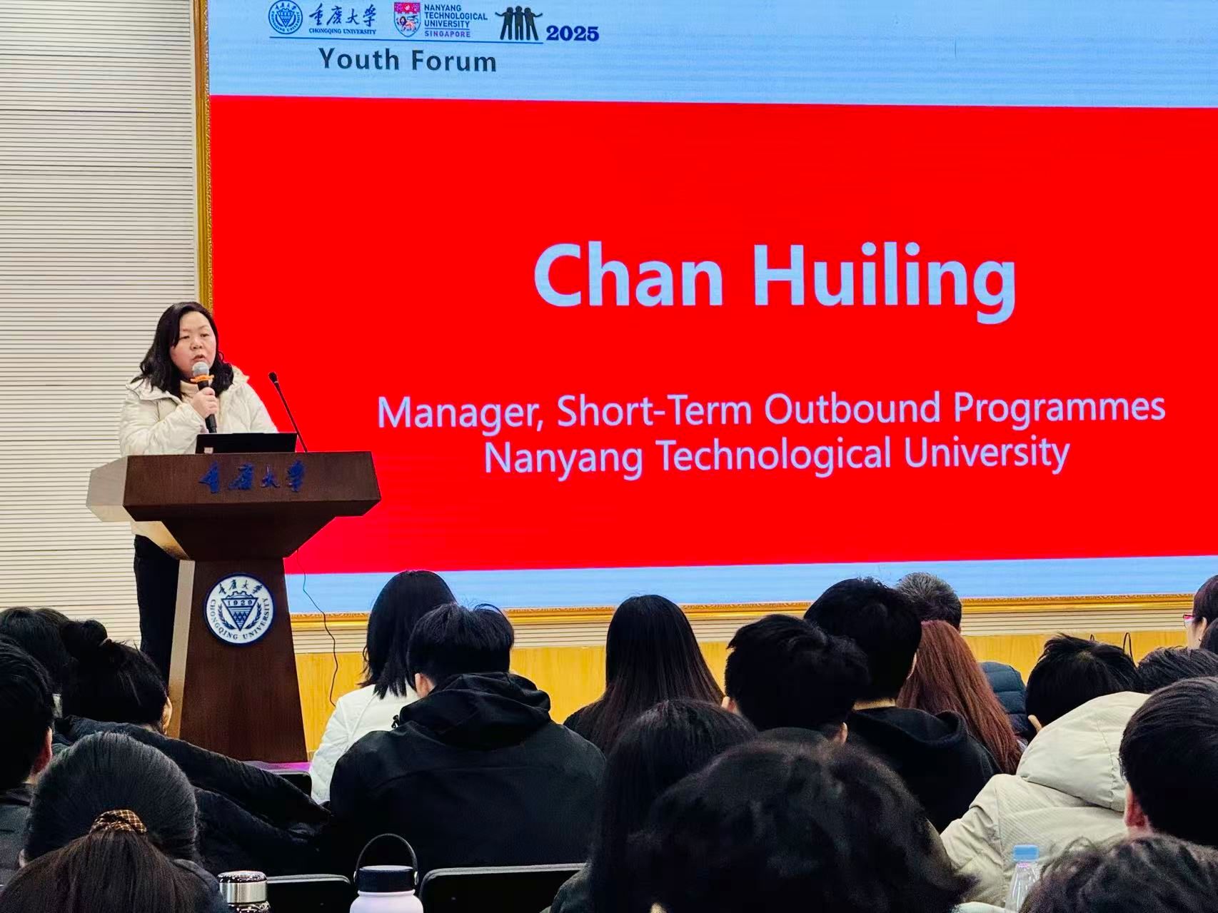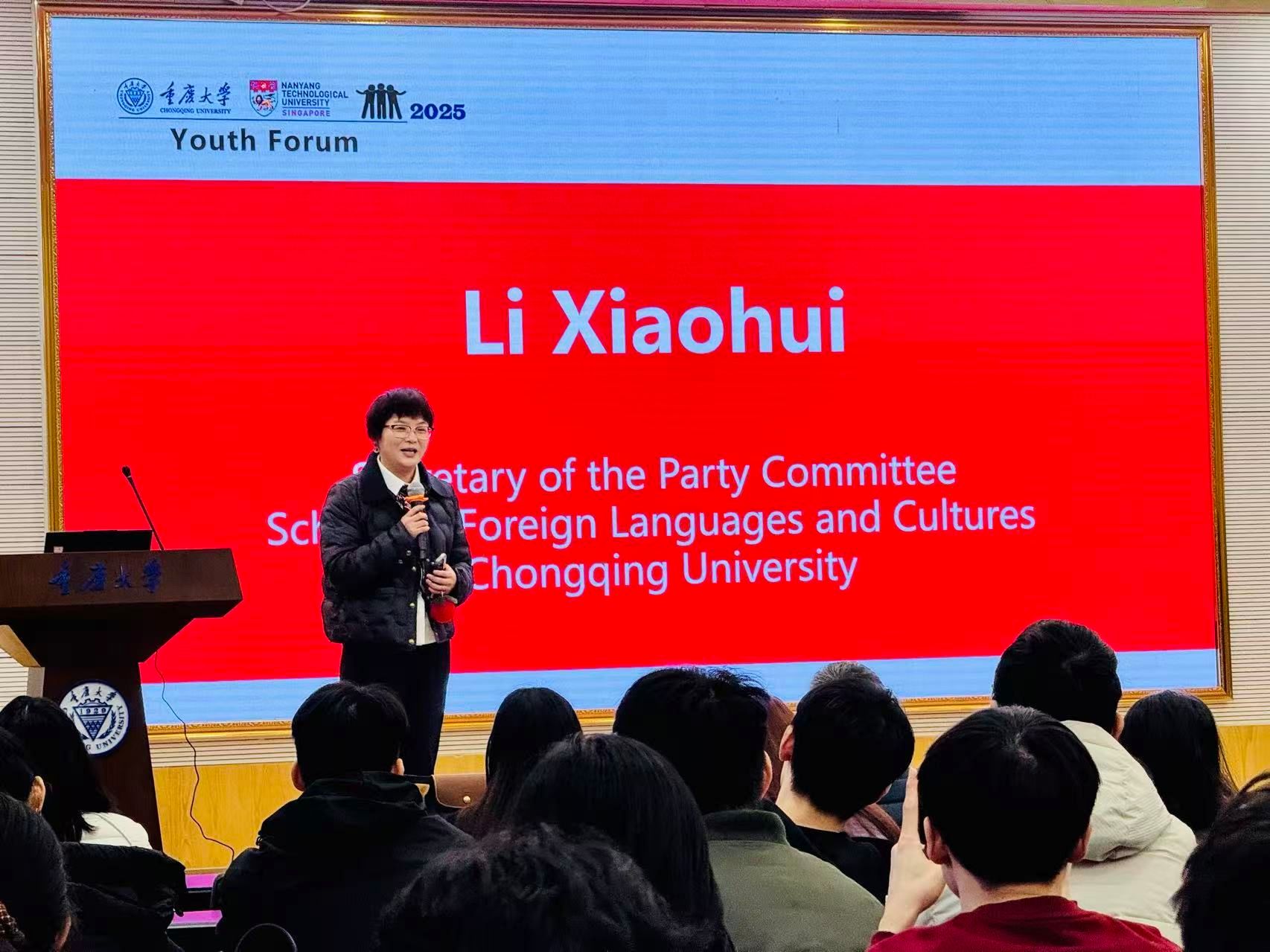 论坛伊始,李小辉与Chan Huiling分别致辞,均聚焦“青年担当”与“文明互鉴”。李小辉表示,全球化背景下,两校青年深度互动是知识共享的过程,更是中国与东盟国家民心相通的纽带,重庆作为西部开放前沿,为南洋理工学子提供了触摸真实中国的鲜活样本。Chan Huiling感谢重庆大学的精心筹备,她指出,项目以“让新加坡青年读懂中国”为目标,此次论坛让新加坡学子对中国新发展理念有了更立体认知,期待两校持续搭建青年交流平台。