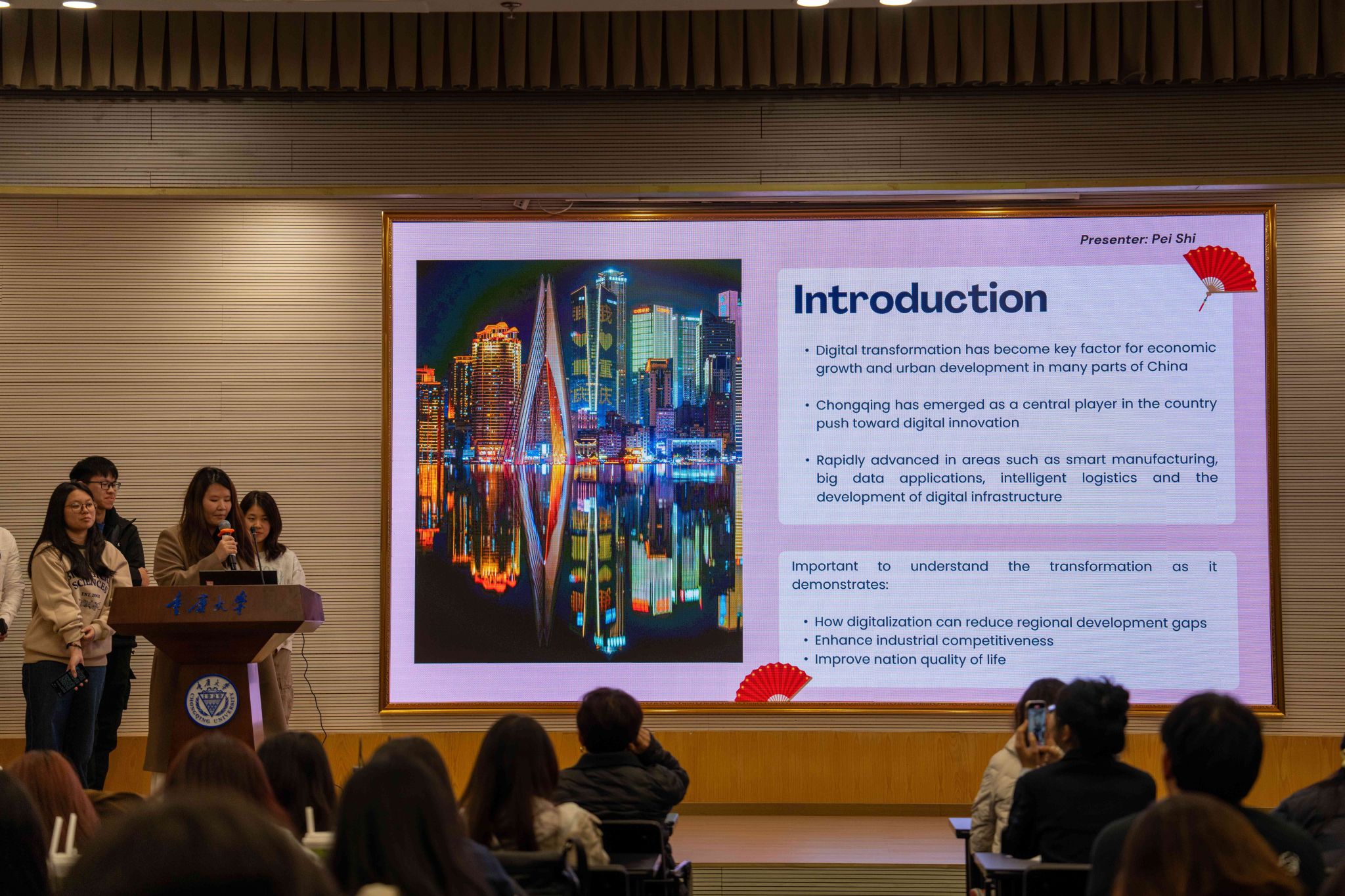 随后,南洋理工大学4支学生团队与重庆大学5支学生团队,围绕“可持续发展”和“文化传承”汇报研究成果。南洋理工学子聚焦重庆 “网红城市”“磁器口古镇遗产更新”“重庆夜生活经济”以及“以科技赋能产业升级”等主题通过2周的研学解读中国发展路径,理解重庆“以人为本”的城市规划与“开放包容” 的城市气质。