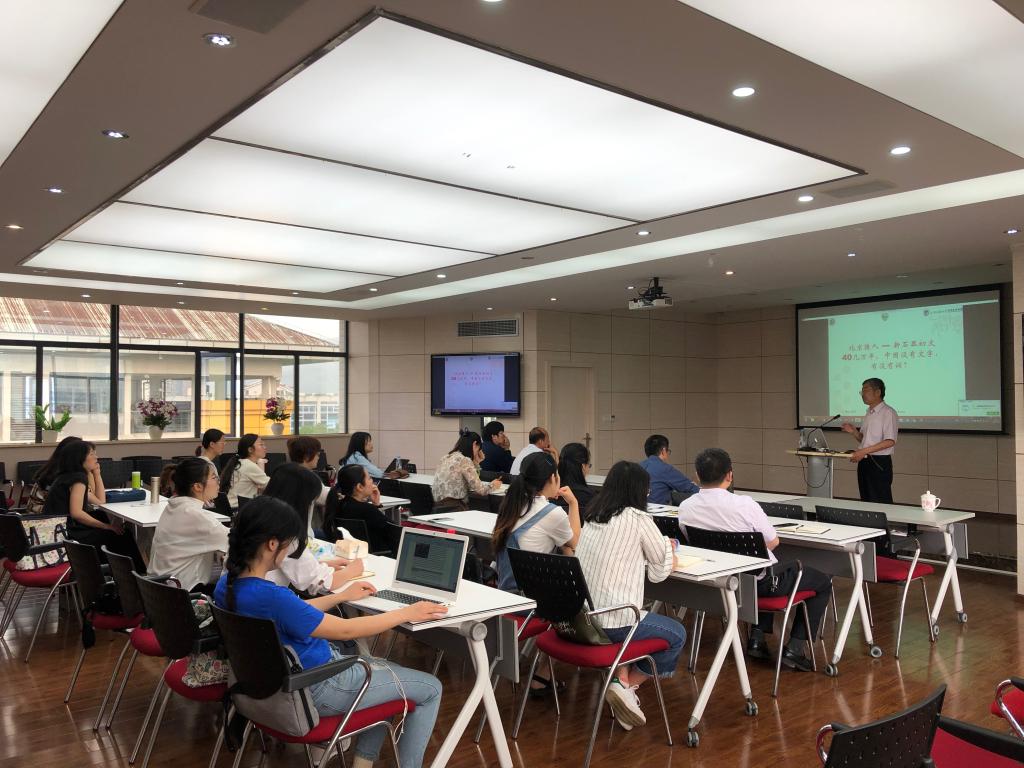 2019年5月31日上午9:30-11:00,“知用讲坛”第11期在学院501学术报告厅举行,本次讲座主题为:汉字帝国的构建,由重庆大学语言认知及语言应用研究基地主办。本次讲座邀请到中国社会科学院语言研究所研究员、应用语言学研究室主任、博士生导师顾曰国教授,外国语学院院长彭静教授主持了本次讲座。基地专兼职研究员、外国语学院部分师生聆听了本次讲座。