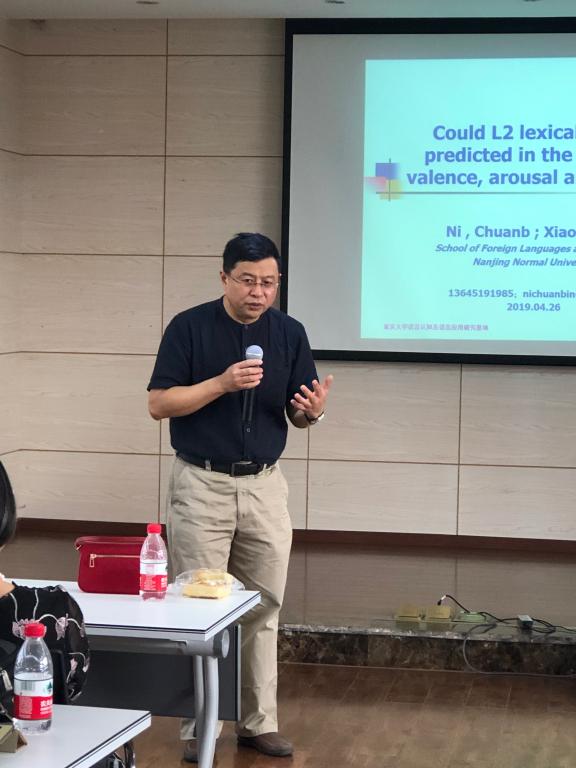 2019年4月26日,南京师范大学语言科技研究所副所长、外国语学院副院长、博士生导师倪传斌教授莅临我院讲学。上午的讲学内容为重大讲座“情感因素对二语词汇磨蚀的预测作用”,由重庆大学人文学部主办,重庆大学语言认知及语言应用研究基地承办,肖巍博士主持。下午的讲学内容为知用沙龙(第8期)“语言科学与语言技术”,由重庆大学语言认知及语言应用研究基地主办,辜向东教授主持。余渭深教授、蒋婷教授等40余名师生参加了讲学活动。