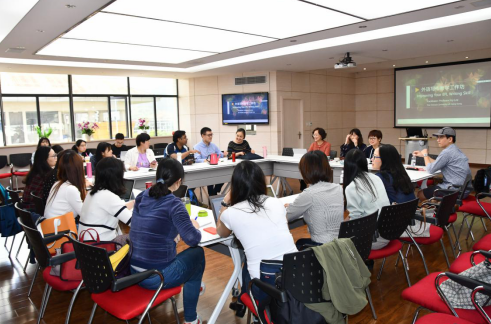在4月20日、21日下午,本期培训组织了两轮圆桌讨论,外国语学院对外语写作教学及研究感兴趣的老师与Icy Lee教授围坐一起,老师们畅所欲言,分享自己的教学经历,分别从写作教学理念、教学方法、教学氛围、教学设计、教学效果等多个方面进行了充分讨论和深入交流。Icy Lee极力鼓励所有的老师积极投入到教学研究中去,同时给每一个老师提出的研究话题都给出了切实的建议。两天的培训让老师们更好地思考和交流自己的教学经验和教学方法,该培训为重庆大学教师在英语课程中提高学生的写作能力提供了新的思路和改进方向。