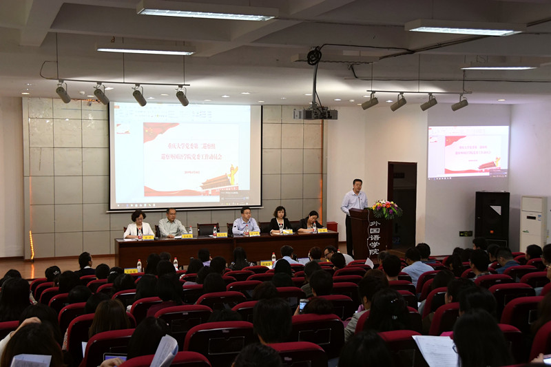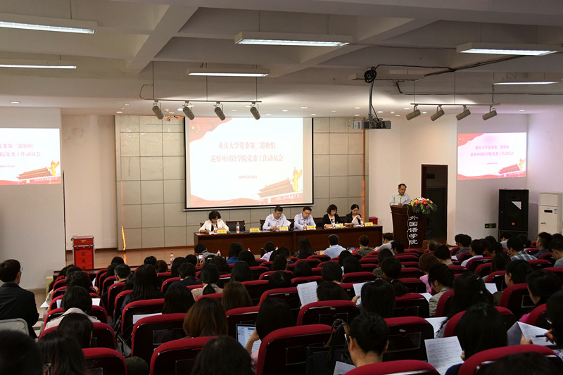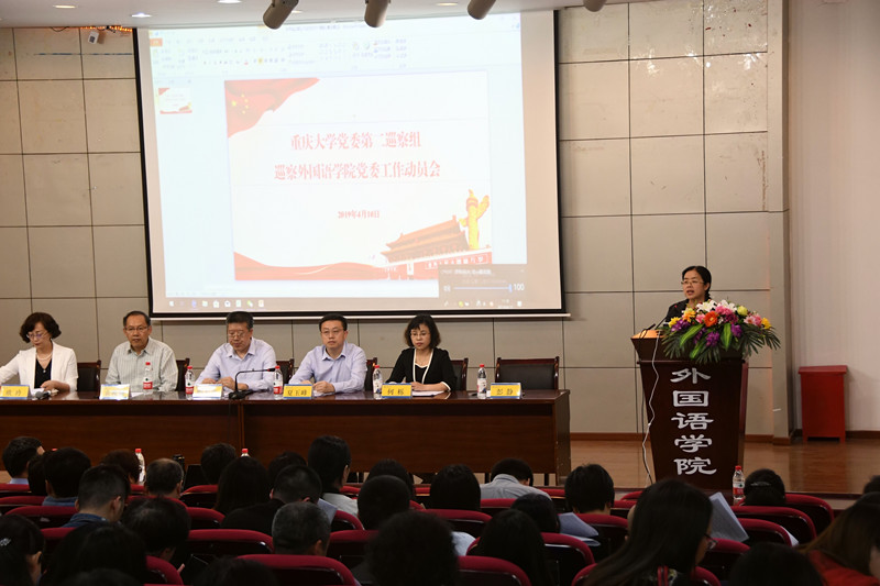 学校纪委副书记、纪委办主任、校党委巡察工作领导小组副组长夏玉峰,纪委办正处级纪检监察员、巡察办公室主任何栎,校党委第二巡察组组长袁政强,副组长李利、周斌,巡察组全体人员,外国语学院全体教职工及近三年退休的副高职称以上教师参加会议。