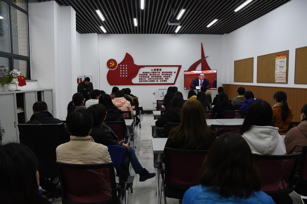 2018年12月18日上午,外国语学院党委组织师生集体观看了庆祝改革开放四十周年大会现场直播,师生干部对习近平总书记重要讲话反响热烈。观影活动由学院党委副书记何建华主持,行政办公室、实验室、学生办公室全体教师、学生党员代表及入党积极分子代表等参加了观影活动。