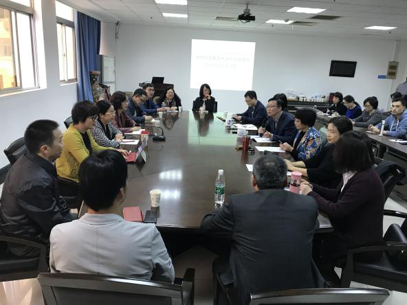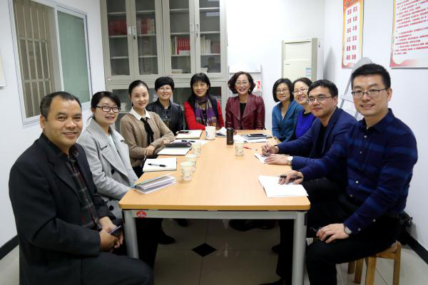 中午,学院部分领导和华中科技大学外语学院徐锦芬教授就帮助和培养我院青年教师成长进行了简短会谈。下午,调研团队就地在华中科技大学外国语学院会议室召开了党政联席会扩大会议,各口汇报并总结上午交流的信息和学习的经验,并针对我院的具体情况谈了这些经验对我们的适用性以及未来努力的方向。