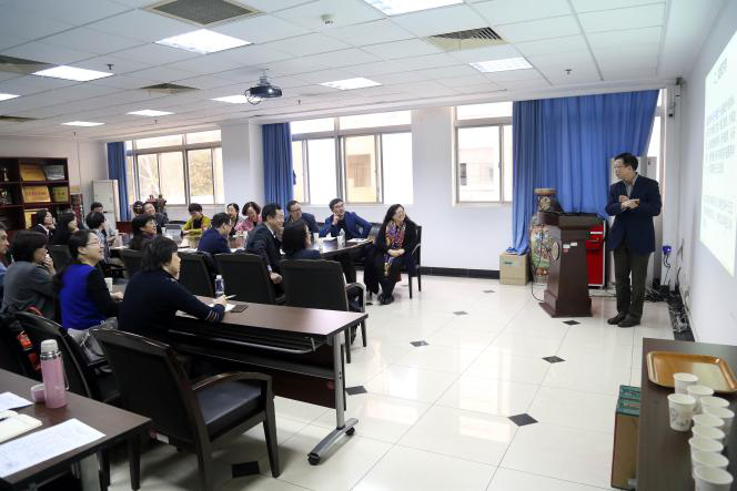 在双方简要介绍了与会人员后,华中科技大学外国语学院院长许明武从该院综合改革方案、改革过程、重点领域、推进措施、实施成效等方面向调研团队详细介绍了其综合改革实施的情况,并介绍了处理一些重点难点问题的经验。许明武院长介绍结束后,调研团队与对方学院团队按照版块职能进行分组,从党务工作、学科科研、人才培养、队伍建设、科研机构建设、学生管理、行政管理等方面进行了一对一的深入交流。