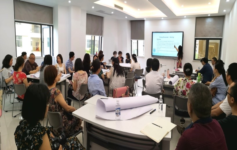 此次拓展课程组公开教研活动由大学外语教育中心副主任冯巨澜老师主持;由担任《中美文化比较》课程的方玲老师、《跨文化交际》课程的谢佳老师、《跨文化商务沟通》课程的孙莺老师、《中国文化简介》课程的潘龙明、《美国社会与文化入门》课程的陈晓莉老师、《希腊文明初探》课程的杨宇老师主讲。老师们从自己的课堂实例出发,结合学生核心素养的培养与在座教师进行了经验分享,如《中国文化简介》的潘龙明老师用中国菜系的学生实作课例、 《中美文化比较》的方玲老师用基于中美贸易摩擦的课堂活动实例向老师们展示了如何培养具有国际视野、又能回归人文积淀的学生素养的课程目标的达成。