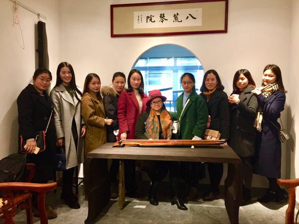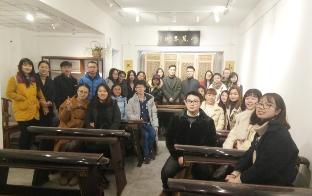 为了弘扬中华传统文化,提升学生艺术修养,我校外国语学院开展了汉语国际教育硕士专业中华文化系列讲座。本学期主讲古琴艺术,由著名古琴演奏家李程老师为大家讲解古琴所蕴涵的传统文化内涵。 继12月21日2016级汉语国际教育硕士专业同学前去八荒琴院实践之后,12月28日下午,2017级汉语国际教育硕士专业的学生以及老师共同前往八荒琴斋观摩实践古琴弹奏艺术。