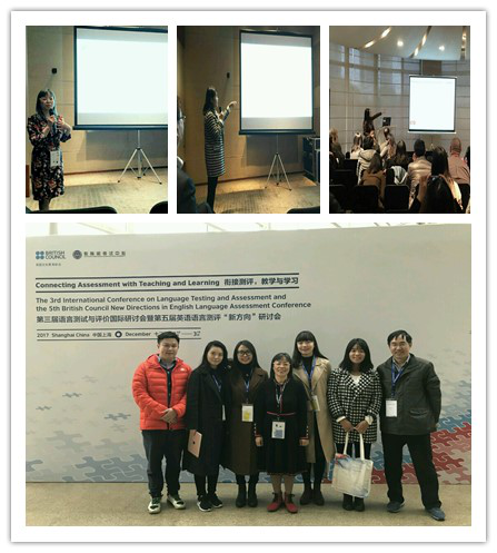 2017年12月2日至3日,由教育部考试中心与英国文化教育协会联合举办的“第三届语言测试与评价国际研讨会暨第五届英语语言测评‘新方向’研讨会”在上海召开。会议以“教学、学习与测评的衔接”为主题,围绕语言能力标准、外语测试改革、语言教师的测评素养、人工智能与技术在语言测试中的应用等四大议题进行了深入地交流与讨论。来自全球23个国家和地区的学者、国际教育机构的代表和国内专家学者500余人参加了本次会议。重庆大学语言认知及语言应用研究基地主任辜向东教授率领语言测试和外语教育数据挖掘团队成员(博士生王萍和访问学者孙睿,还有之前的硕士毕业生颜巧珍、黄妍琪、吴宗酉、董曼霞等)参加了本次会议。