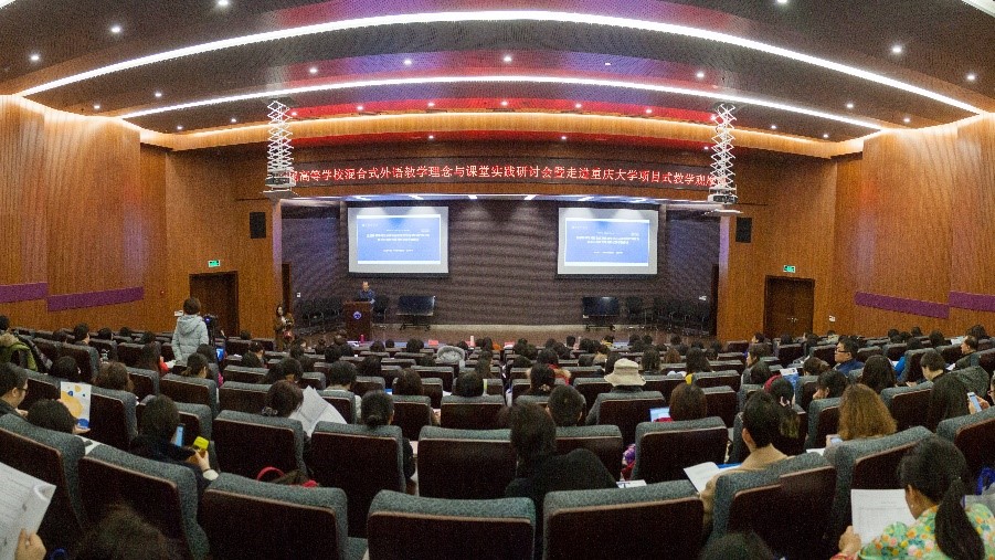 2017年12月2-3日,全国高等学校混合式外语教学理念与课堂实践研讨会暨走进重庆大学项目式教学观摩课在乐鱼网页版成功举办。此次研讨会由乐鱼网页版和高等教育出版社联合主办,来自全国各地70所高校170余位优秀英语教师汇聚一堂,交流基于PBL的研究型混合式外语教学模式。本期研讨会为期两天,设1个主论坛和5个分论坛,从理论依据到课程设置、到教学设计、以及课堂教学全方位研讨基于PBL的研究型混合式教学模式。