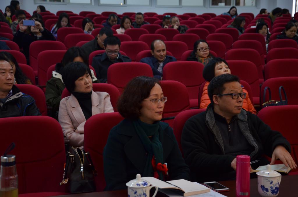 在近3个小时的宣讲报告会上,何教授紧扣党的十九大报告原文,紧紧围绕习近平新时代中国特色社会主义思想这个主线,理论联系实际,通过古今对比、中外对照,抽丝剥茧的剖析,让大家对十九大精神有了全方位多层次多角度的理解。宣讲报告结束之际,何跃教授表示了对外国语学院的友好祝愿,欧玲书记也代表全院教职工向何跃教授的精彩宣讲表示衷心感谢,要求全院各系、课程组和各支部要自行组织开展十九大精神报告学习,教师个人要积极思考,相互之间要多交流探讨,把十九大报告悟通,将思想与行动统一到教学中,促进自身专业能力的提升,进而为学院发展助力。