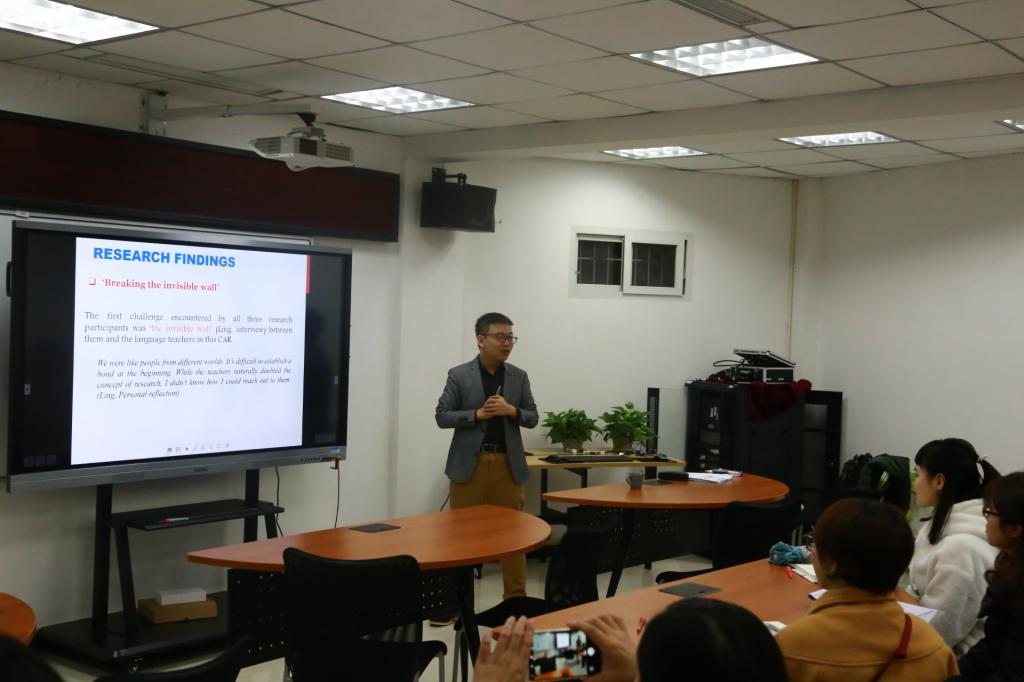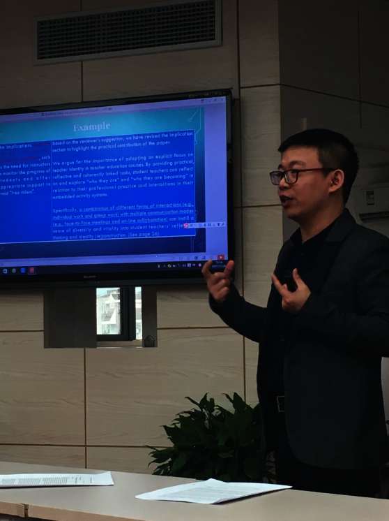 此次教学学术工作坊由6个部分的内容组成,第一部分讨论了当前教师教育研究从技术型范式向社会文化范式的转向,并对热门的教师教育话题,比如教师认知,教师情感,和教师身份,进行了探讨;第二部分关注高校教师如何将教学与研究结合,促进教研共长。袁博士以一个具体的课堂研究为案例,展示了在课堂教学进行创新的同时,如何拟定研究问题,收集与分析数据。最后,讲座指出教师需要在课堂研究过程不断反思,与学生一起“生成”数据,同时也要关注研究伦理道德问题,以提升研究的可信度与效度;第三个部分介绍了两位外语教师如何同高校教师教育者合作进行行动研究,促进学生语言发展。袁博士首先展示了两位教师在行动研究中面临的挑战,比如对研究的恐惧与研究能力薄弱。通过与高校教师教育者的合作,他们逐步克服了挑战,转变了对研究的认识,并在同事中推广行动研究。第四个部分展示了高校教师教育者与中学教师合作行动研究中面临的挑战。高校教师教育者由于对课堂教学环境认识不足,在合作过程中可能无法对中学教师进行有效指导。同时,由于双方背景差异,在合作过程中可能出现误解与冲突。袁博士通过具体案例,展示了高校教师教育者可以采用的具体策略,以扫清沟通障碍,促进行动研究的持续发展。第五部分首先介绍在国际期刊投稿过程中如何有效选择期刊,之后带领参与者对一篇论文进行了细致的阅读与分析。通过对该论文的不足与修改方向的讨论,参与者提升了对英文论文撰写与投稿的认识与技巧;第六部分关注在国际期刊发表过程中如何针对审稿人意见对论文进行有效修改。工作坊参与者通过对具体案例的分析,了解了审稿人通常关注的问题,并讨论了论文修改的具体策略。