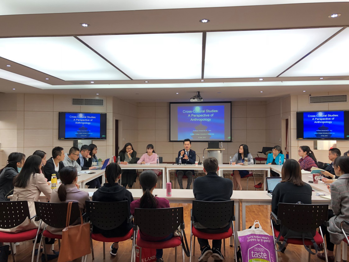 讲座于上午9:30在外国语学院501学术报告厅举行。綦教授首先介绍了自己的个人经历和研究人类学(Anthropology)的缘起历程。綦教授认为:“人类学是从生物和文化的角度对人类进行全面研究的学科群。最早见于古希腊哲学家亚里士多德对具有高尚道德品质及行为的人的描述中。”接下来,綦教授以瑞典经理人与中国经理人之间的对比、瑞典式管理在中国的尴尬、泛巡中国文化的根、我们中国人的行为习惯以及中国人需不需要改变等话题来一一阐述人类学的意义并与现场师生展开热烈的讨论。