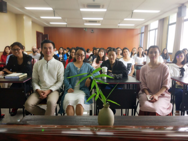 在汉语国际教育专业负责人李静老师的主持下,讲座顺利展开。她首先邀请了乐鱼网页版的院长彭静老师讲话。彭院长提到,古琴是中国最古老的艺术,希望这次讲座能够开启汉硕专业学生了解优秀中国文化的大门。她还表示,在从事汉语教学过程中,同学们也应该将中华优秀传统文化传播出去,让更多的人感受到中国的独特魅力。