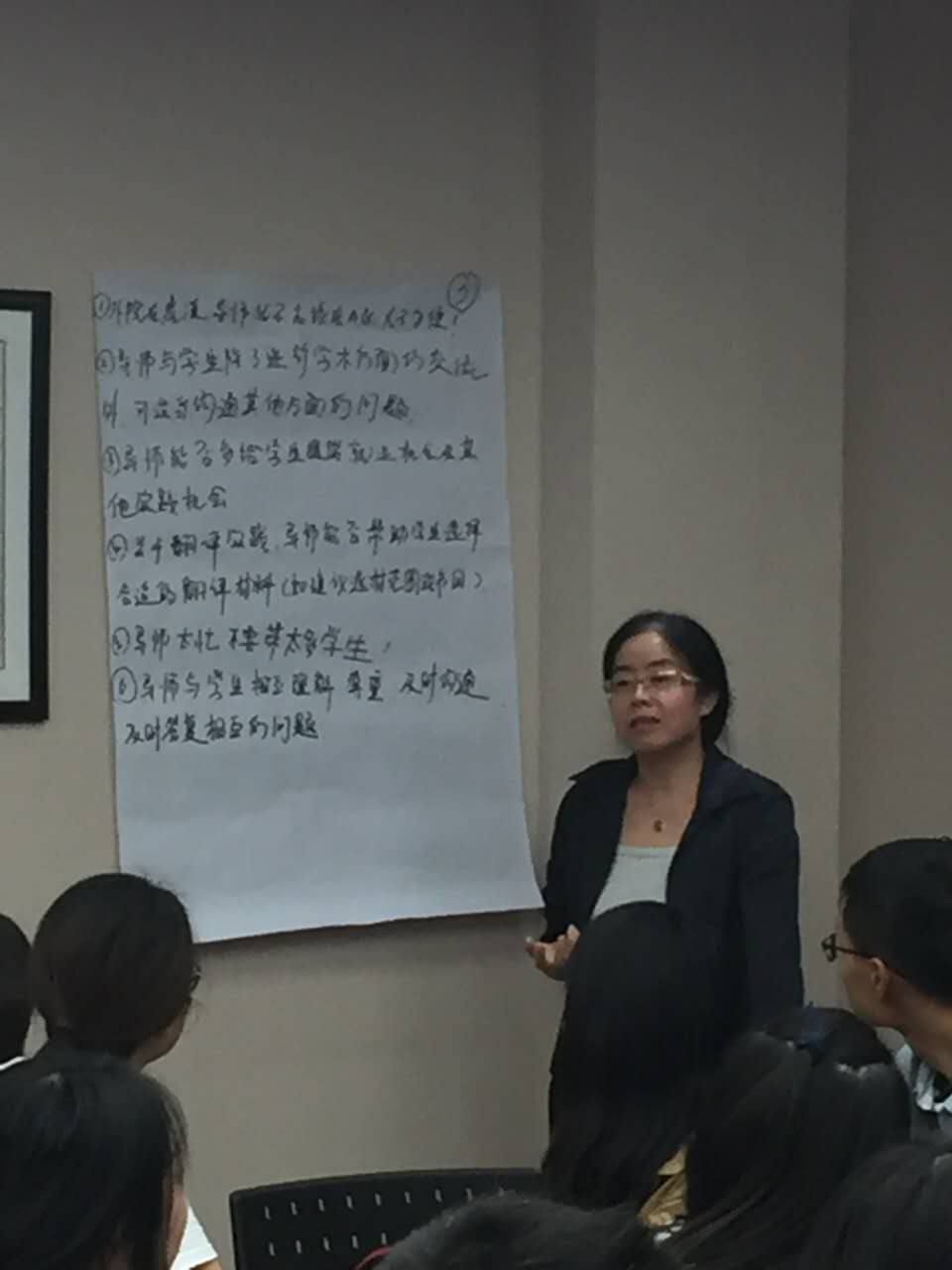 会上,彭静院长希望外语学院翻译硕士为学校优势学科服务,同时,希望全体师生共同努力,将翻译硕士点办成外国语学院服务社会的窗口。最后,彭院长热切希望各位翻硕同学都能做一个洋气的外语人。同学们纷纷表示,这次指导会贴近学生、形式新颖、成效显著!