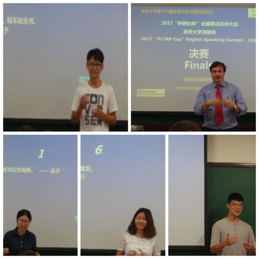 为进一步推动我校学生英语综合应用能力的提高,实现“以赛促学、以赛促用”,学院大学外语教育中心自2017年6月启动大学英语演讲、写作、阅读英语能力竞赛,并于2017年9月14日下午举办了重庆大学2017年大学英语演讲、写作、阅读大赛暨“外研社杯”重庆大学选拔赛。