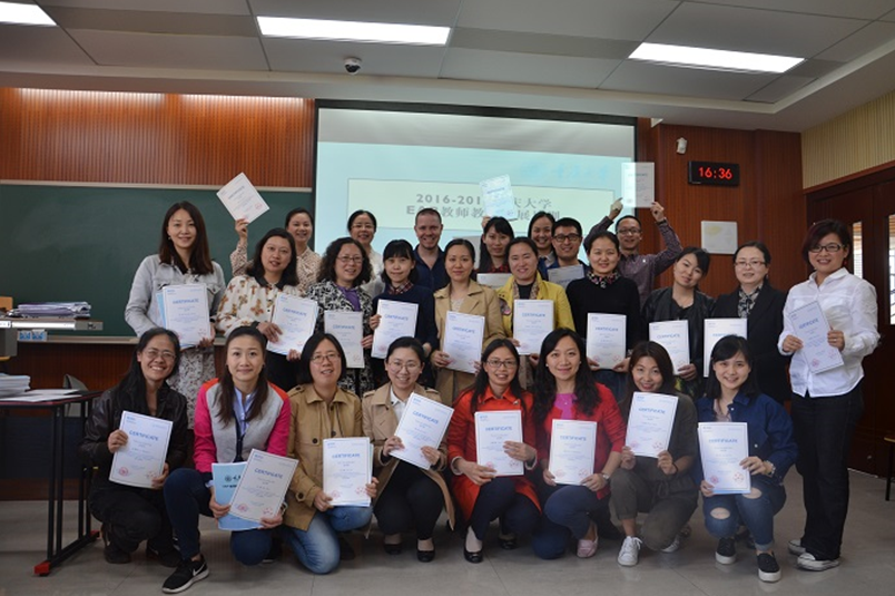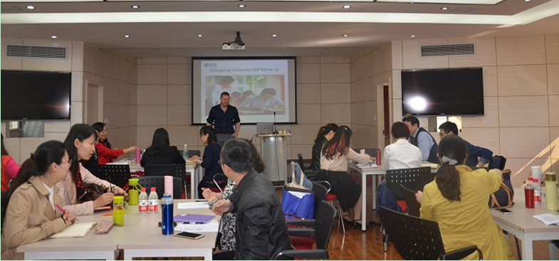 2017年4月13日由重庆大学教师教学发展中心,外国语学院及英国总领事馆文化教育处合作举办的学术英语(EAP)教师发展项目跟进培训圆满结束。此次培训是2016年11月EAP教师发展项目的后续跟进环节,旨在让受训学员在总结反馈第一阶段培训培训效果,加深受训教师对EAP的理解,促进EAP课程建设和教学实践。