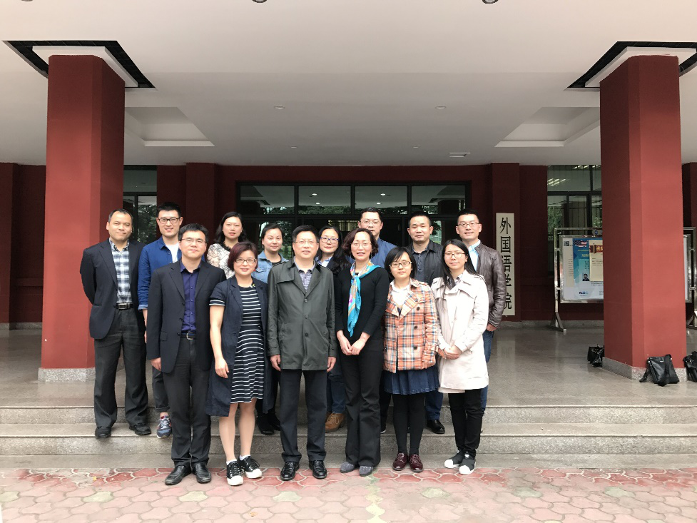 2017年4月17日下午,外国语学院党委书记欧玲老师,党委副书记何建华老师,副院长李小辉老师,大学外语教学中心相关负责人、大学英语各课程组负责人、学院教学管理人员和学生管理人员赴四川大学外国语学院调研,了解四川大学在大学外语教育、教师队伍建设、国际化、人才培养等方面的先进经验。四川大学外国语学院党委书记彭亮教授、院长段峰教授,副院长杨光教授以及黄小虎院长助理接待了我院教师代表团。