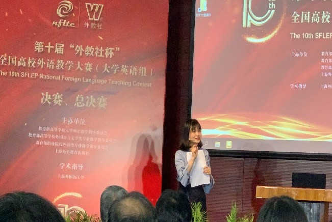 2019年11月3日,经过两天的角逐,乐鱼网页版熊菲老师从来自全国30个省市冠军中脱颖而出,成功斩获第十届“外教社杯”全国高校外语教学大赛综合组一等奖,向全国外语教育界同行生动、形象地展示了我校大学外语教育中秉承的“研究性学习”教育教学理念,为进一步推动全国大学外语教学改革创新提供了完美的案例。