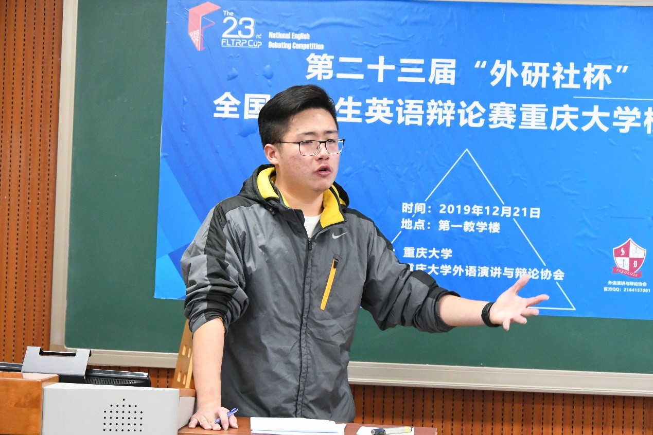 2019年12月21日,第二十三届“外研社杯”全国大学生英语辩论赛重庆大学校园选拔赛在重庆大学虎溪校区第一教学楼D1327-D1330教室顺利举办。本次大赛共吸引全校52支队伍参赛,分为初赛、复赛、决赛三场赛程,采用BP赛制(英国议会制),每轮4支辩论队出场,正反方分别由2支队伍构成,并分别发表开篇陈词和总结陈词,每支队伍都需要与其他几支队伍进行竞争,最后决出名次。