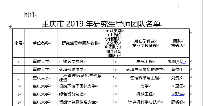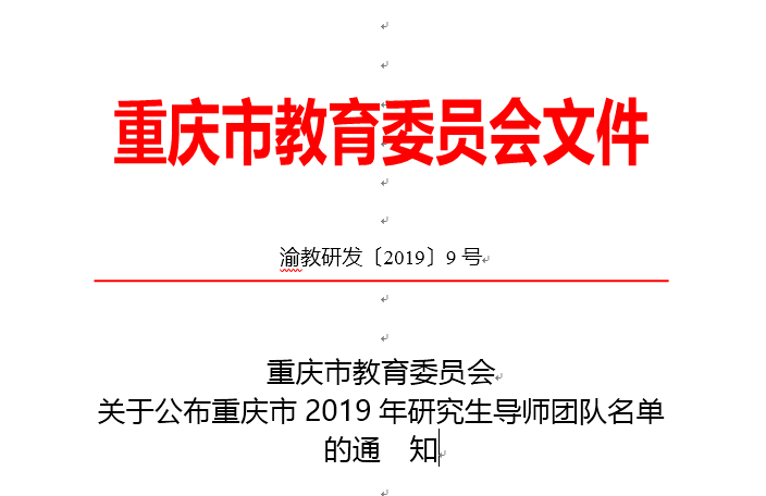 2019年11月22日,重庆市教育委员会公布了2019年研究生导师团队名单,由外国语学院辜向东教授、计算机科学与技术学院周庆教授领衔的语言、认知与智能计算研究生导师团队名列其中。设立研究生导师团队的目的旨在进一步加强研究生教育和导师队伍建设,充分发挥研究生导师团队在全面推进 “双一流”建设和高等教育内涵式发展中的引领示范作用。