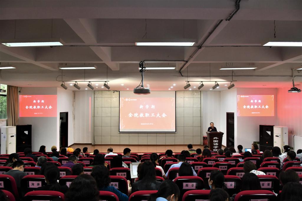 9月17日,外国语学院新学期全体教职工大会在学院楼二楼多功能厅举行,会议由党委副书记魏世平主持。