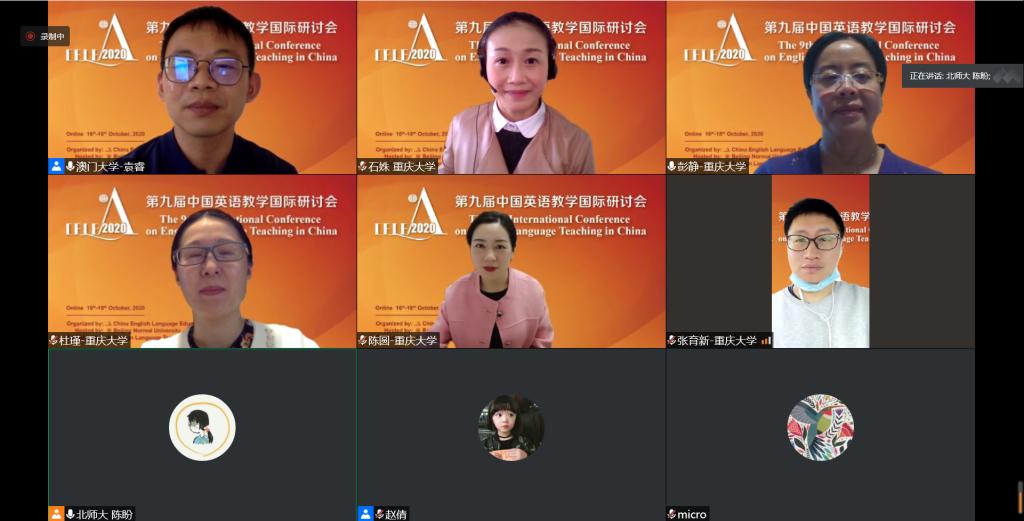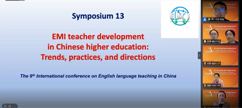 2020年10月18日下午,由外国语学院彭静院长带队的,由外国语学院、教师教学发展中心和材料学院组成的跨学科团队在第九届中国英语教学国际研讨会上举办了题名为 “中国高校EMI(English as a Medium of Instruction)教师发展——趋势、实践和发展方向”(EMI Teacher Development in Chinese Higher Education:Trends,Practices,and Directions)的专题报告会。中国英语教学国际研讨会由中国英汉比较研究会、英语教学研究分会举办,每三年一届。本届会议从2020年10月16日至18日在线上举行,主题为“走向人类命运共同体的英语教学:洞察与前瞻”。