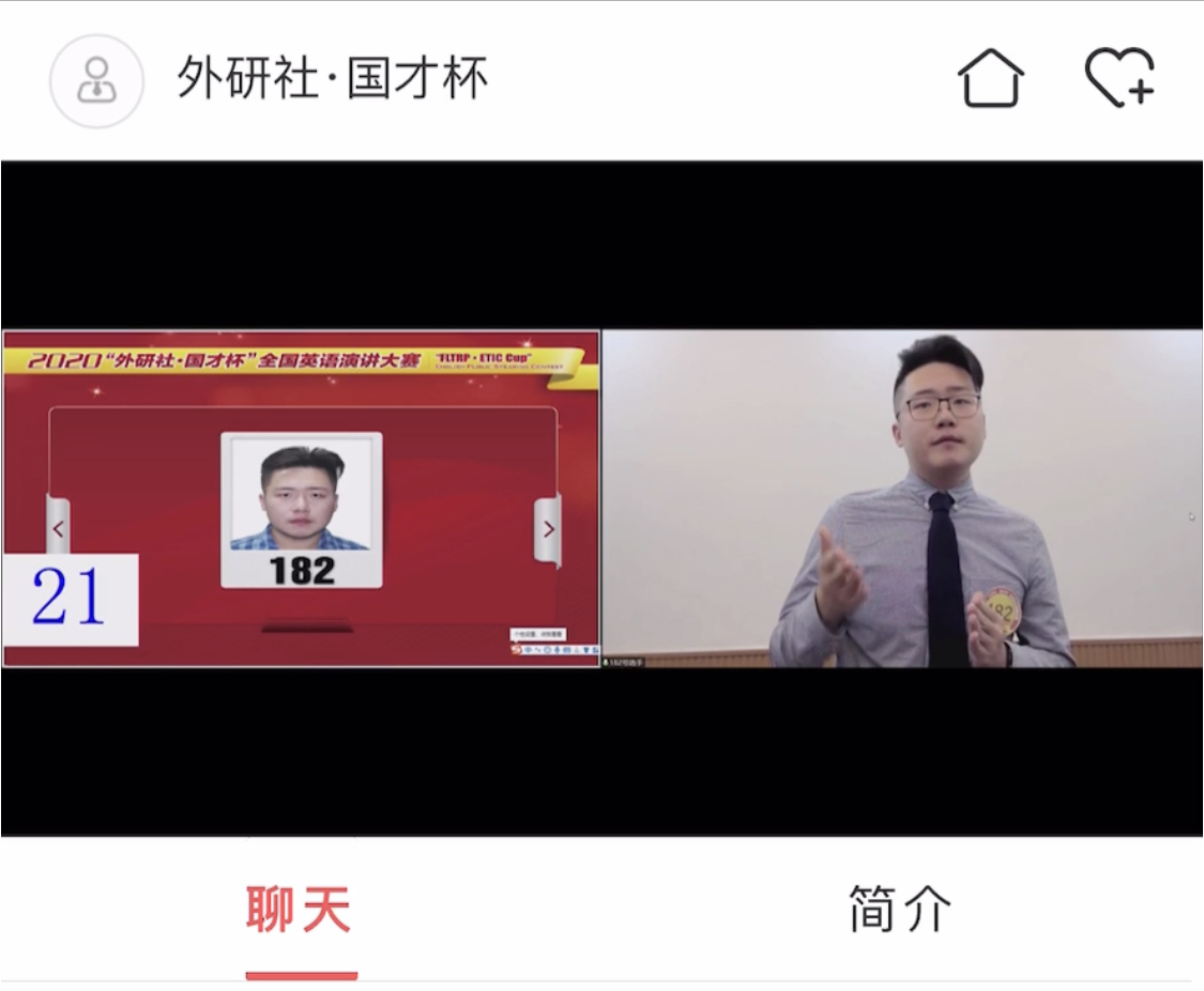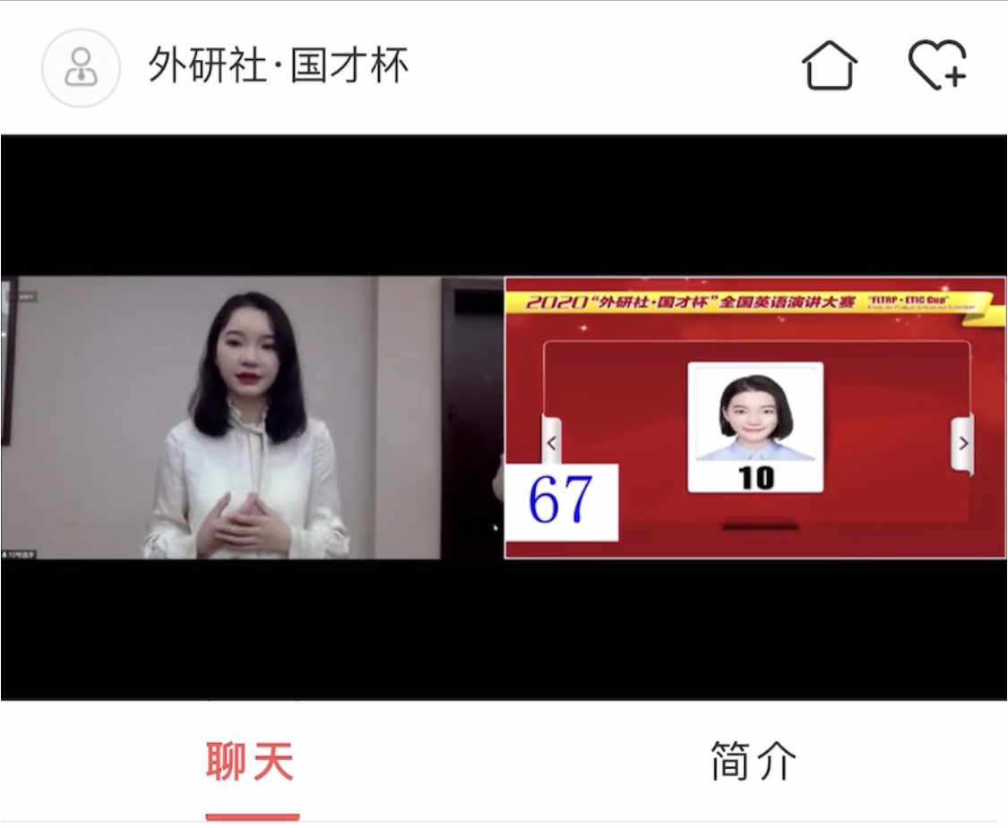 演讲大赛全国总决赛第一阶段于2020年12月14日在线上平台进行,我校4位选手分上午下午两场与全国各地晋级国赛的选手一同在云端逐鹿。在激动人心的特殊比拼中,翟诗文、周起闻凭借优异的语言应用能力与思辨能力晋级到15日赛事第二阶段。