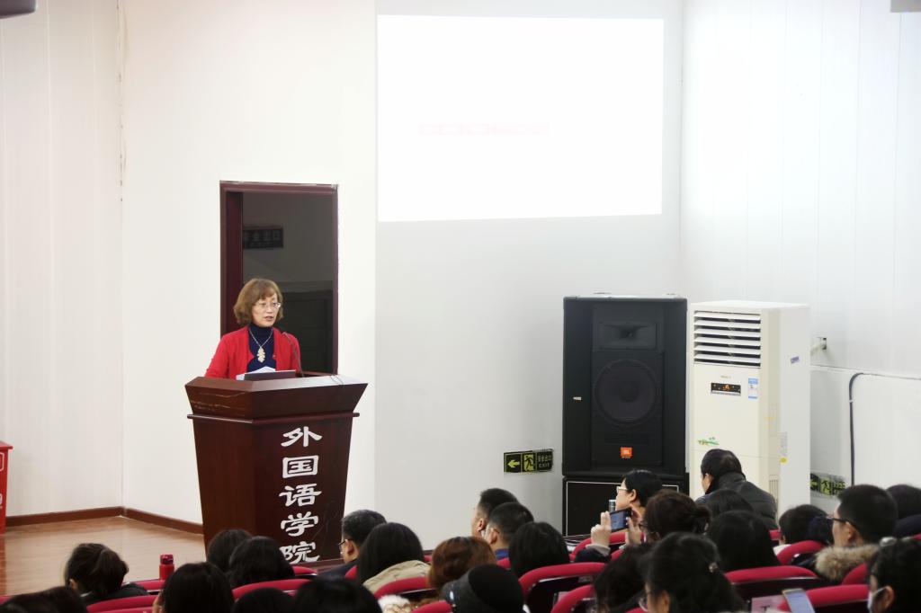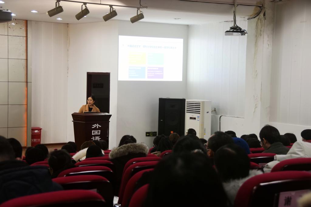 接着,学院党委书记欧玲代表领导班子做了题为《以一级学科建设为抓手 推动外国语学院高质量发展》的述职报告,向大家汇报了一年来学院在党建工作、队伍建设、人才培养、学科建设、国际合作与交流等方面所取得的成绩。2020年是外国语学院各项工作取得重要进步的一年,在学校党政的正确领导下,学院党政班子团结带领全院师生员工凝心聚力、迎难而上,各项工作取得显著成绩。欧玲书记表示,学院一年来取得的成绩,得益于学校党政的正确领导、学院领导班子的团结协作和全院教职工的共同努力。
