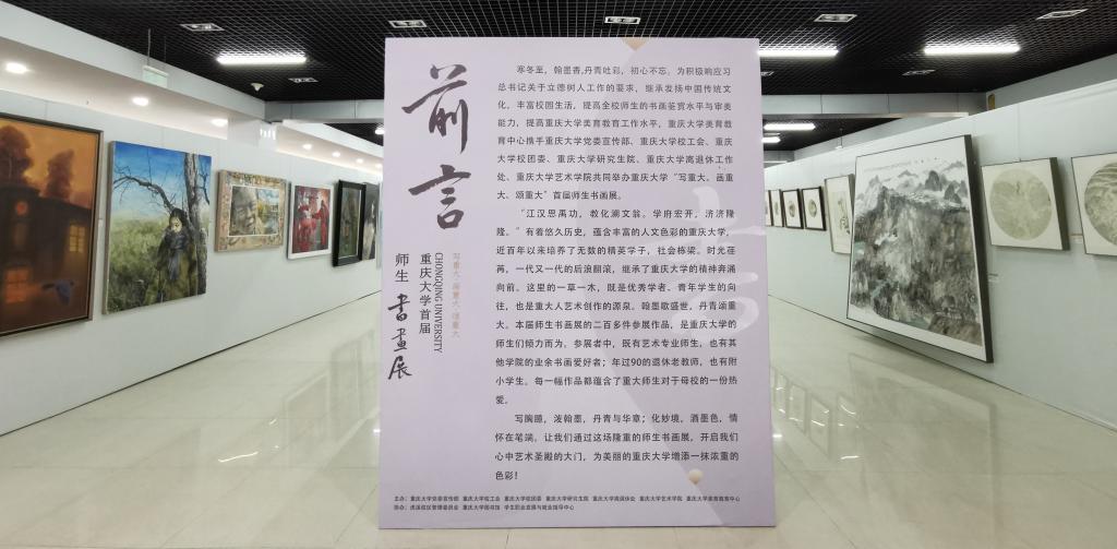 2020年12月15日至30日,由学校七部门联合主办的重庆大学首届师生书画展分别在A区主教学楼和虎溪校区图书馆展览厅举行,我院汉语国际教育硕士专业受邀参加此次展览活动。