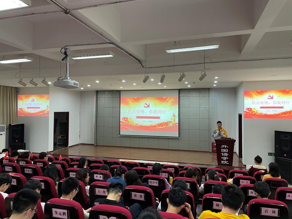 最后,由外国语学院李恒振分享抗击疫情期间中国战疫精神的系列感悟。随后带领大家回顾了抗疫斗争的重大战略结果,以个人在疫情中居家隔离、募集善款、守护后方为例展现了当代青年不可忽视的力量,呼吁同学们为攀登“添油”,为信念“燃灯”。