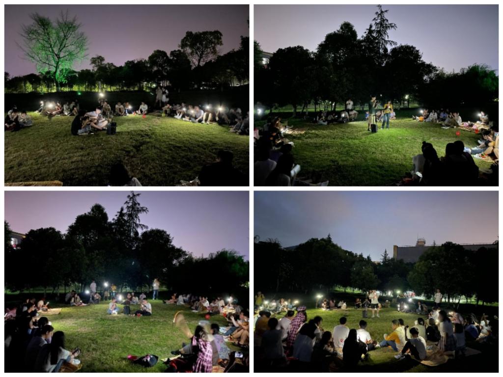 随后由环境学院杨煜隆同学给大家带来吉他弹唱《安河桥》和《南方姑娘》,大家纷纷打开闪光灯随着音乐的律动一起挥舞手机,情不自禁的跟着吉他声一齐哼唱。之后为大家演唱的还有外国语学院的的夏宁尉、赵巧尧,自动化学院的陈韦名和陈俊竹,以及来自环境学院的彭诗雨等同学,并在最后进行了听歌识曲环节,观众们用激烈的掌声表达对参演同学的喜爱。在欢乐、融洽的氛围中,本次活动正式落下帷幕。