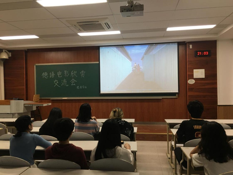 2020年5月29日德语学社在虎溪校区第一教学楼D1203举办德语电影欣赏交流会,组织社员们观看经典二战反思文学电影《铁皮鼓》,本次活动有来自不同学院,多个专业的同学参与,大家一同观看影片,并在观影结束后进行讨论,发表了各自的观后感想。