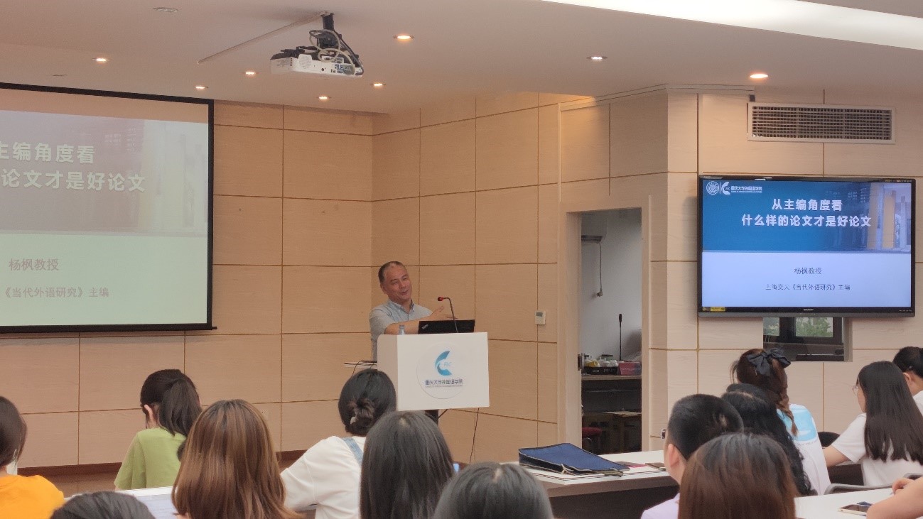 2021年6月17日下午,上海交通大学外国语学院教授、博士生导师、《当代外语研究》主编杨枫应学院邀请来访,并以“从主编角度看什么样的论文才是好论文”为主题,与学院师生进行了深入地交流。座谈会由外国语学院院长彭静主持,党委书记欧玲、副院长杨小虎等学院领导也参加了此次交流活动。