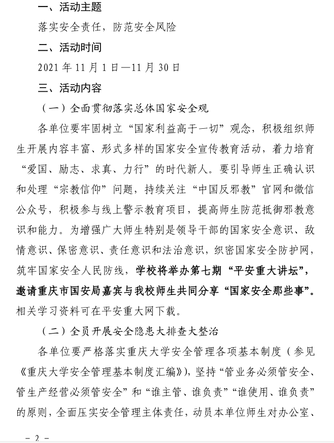 【转】关于开展重庆大学2021年安全教育月暨“119”消防宣传月活动的通知