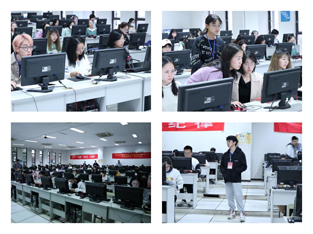 本次比赛为闭卷写作,选手须以党史为基础在给定题目下于九十分钟内上机书写一篇400—600词的议论文。随着比赛拉开序幕,选手们认真阅读参考资料,光荣的党史正慢慢被译作优美英语文字,两个考场便成了重大才子们挥洒才思的宝地,文字的魅力感染了现场的每个人。与此同时,工作人员也兢兢业业地进行监考工作,炯炯的目光为本次比赛的公平诚信保驾护航。