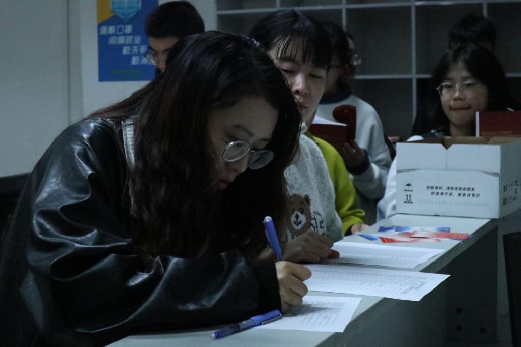 本次活动共设立综合楼109、综合楼209两个考场,现场工作人员(由相关部门,社团及志愿者组成)提前到达指定地点,为前来的选手做好开考前准备工作,确保本次比赛顺利开始。选手于下午三点前均完成现场签到,并领取到由英语协会进行翻译的英文版党史资料,作为比赛唯一资料。