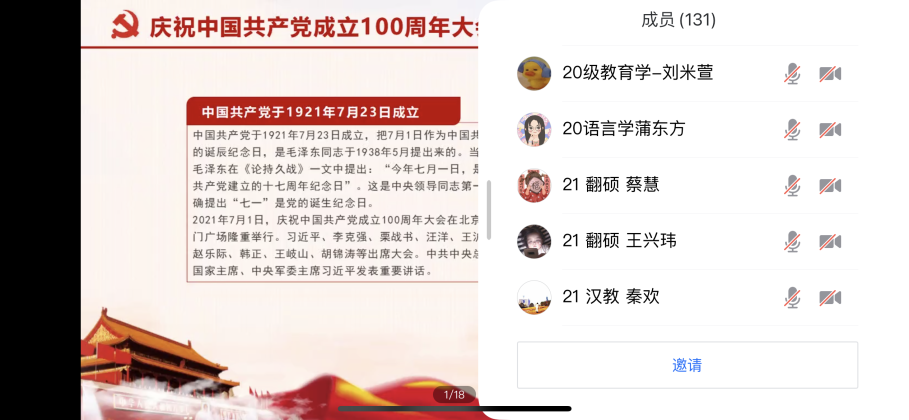 本次党团活动共由三个部分构成,即:小组主题分享、党团知识竞赛和个人感悟分享三个环节,共有130余名同学参与到线上会场,十余位同学参与线下会场。
